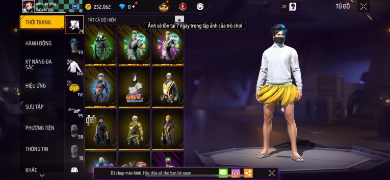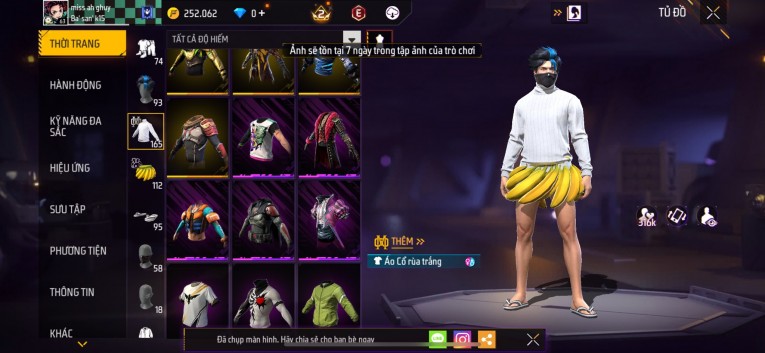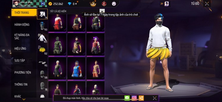 Acc chơi lâu, nhiều skin súng xịn, đầy đủ áo và phụ kiện nam. Đồ đủ dùng, đẹp mắt – vào chơi là chiến ngay! Phù hợp anh em thích skin đẹp, súng mạnh, acc ổn định.