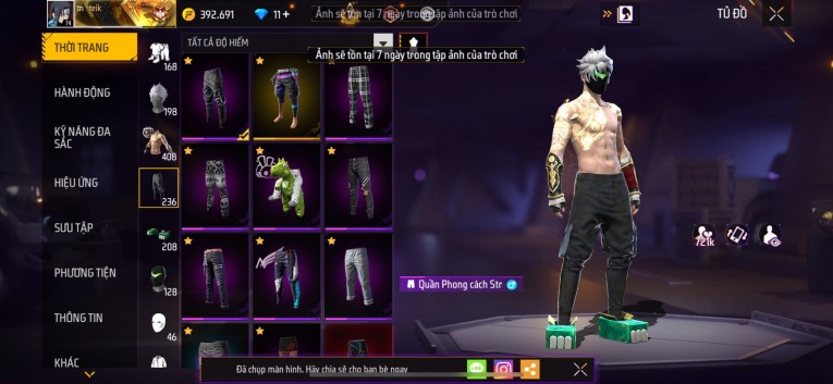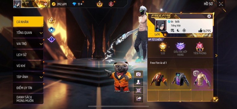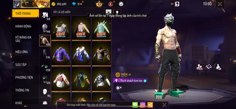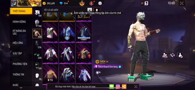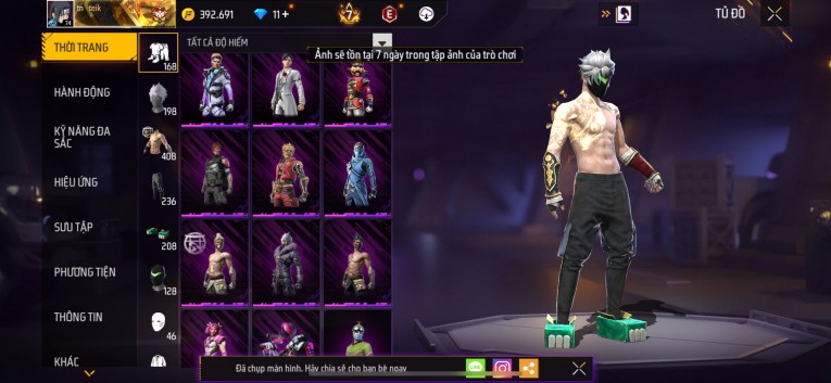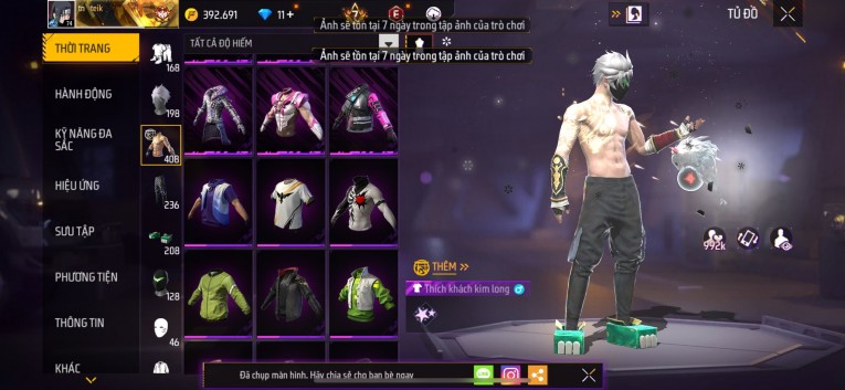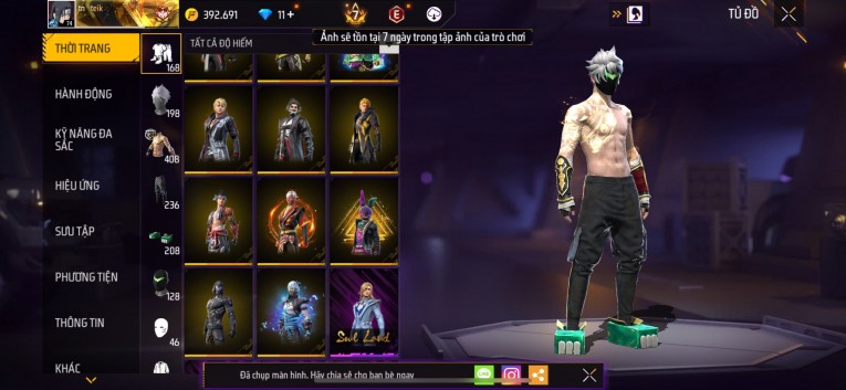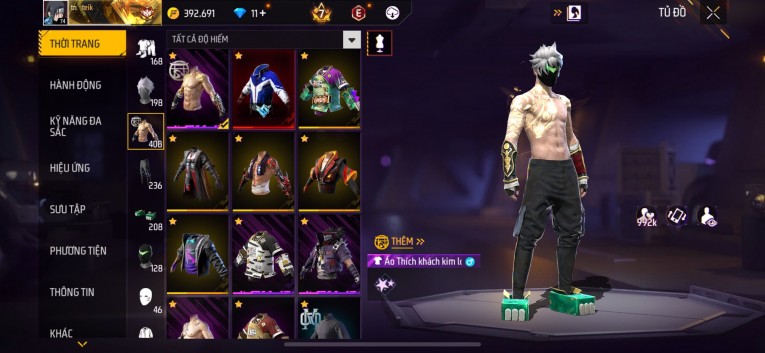 Acc chơi lâu, nhiều skin súng xịn, đầy đủ áo và phụ kiện nam. Đồ đủ dùng, đẹp mắt – vào chơi là chiến ngay! Phù hợp anh em thích skin đẹp, súng mạnh, acc ổn định.