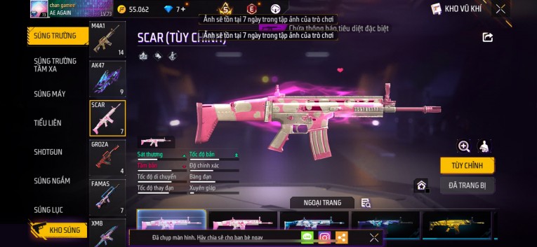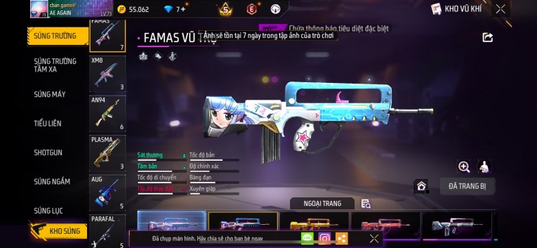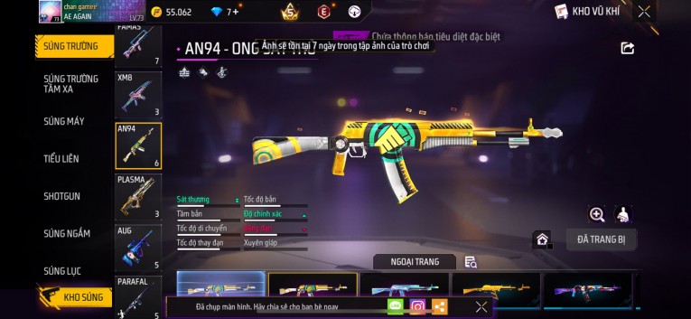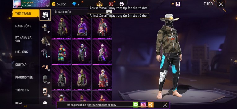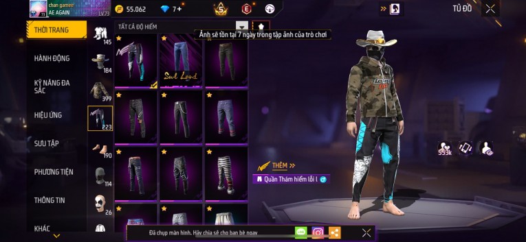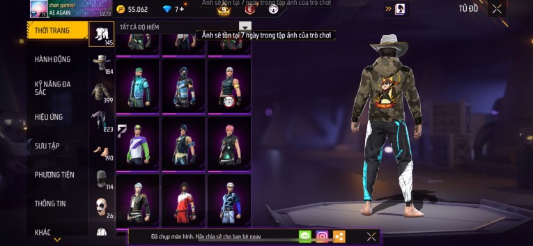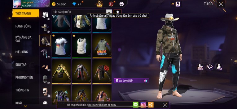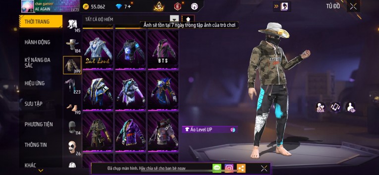 Acc chơi lâu, nhiều skin súng xịn, đầy đủ áo và phụ kiện nam. Đồ đủ dùng, đẹp mắt – vào chơi là chiến ngay! Phù hợp anh em thích skin đẹp, súng mạnh, acc ổn định.