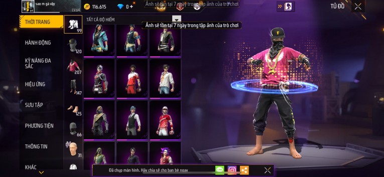 Acc chơi lâu, nhiều skin súng xịn, đầy đủ áo và phụ kiện nam. Đồ đủ dùng, đẹp mắt – vào chơi là chiến ngay! Phù hợp anh em thích skin đẹp, súng mạnh, acc ổn định.