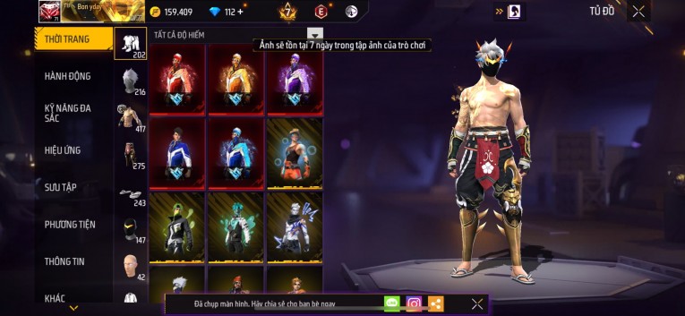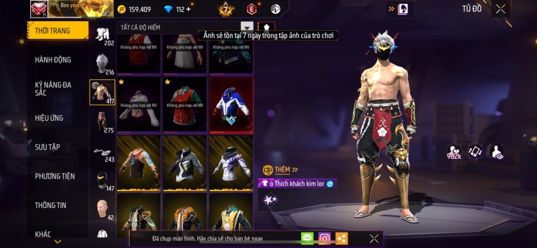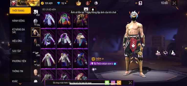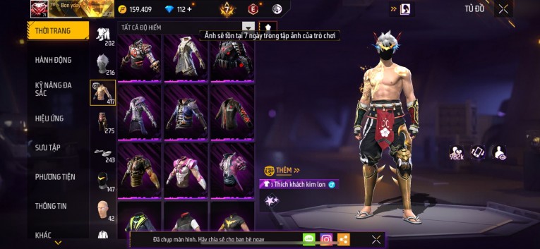 Acc chơi lâu, nhiều skin súng xịn, đầy đủ áo và phụ kiện nam. Đồ đủ dùng, đẹp mắt – vào chơi là chiến ngay! Phù hợp anh em thích skin đẹp, súng mạnh, acc ổn định.