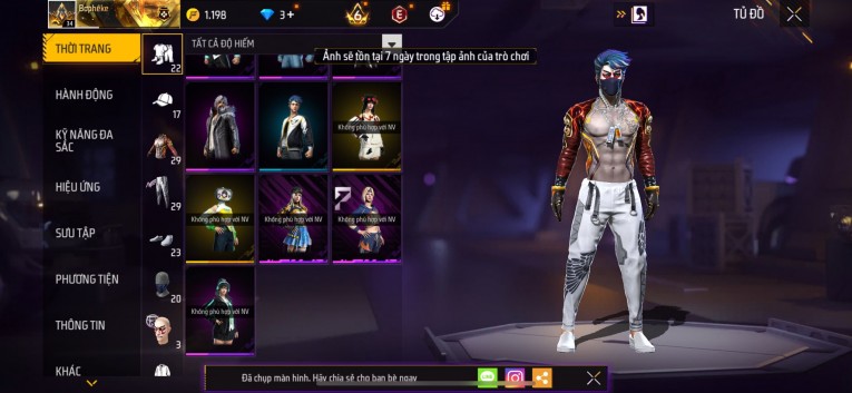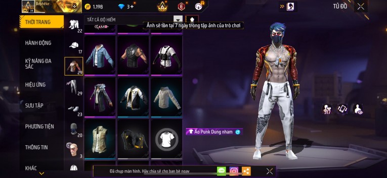 Acc chơi lâu, nhiều skin súng xịn, đầy đủ áo và phụ kiện nam. Đồ đủ dùng, đẹp mắt – vào chơi là chiến ngay! Phù hợp anh em thích skin đẹp, súng mạnh, acc ổn định.