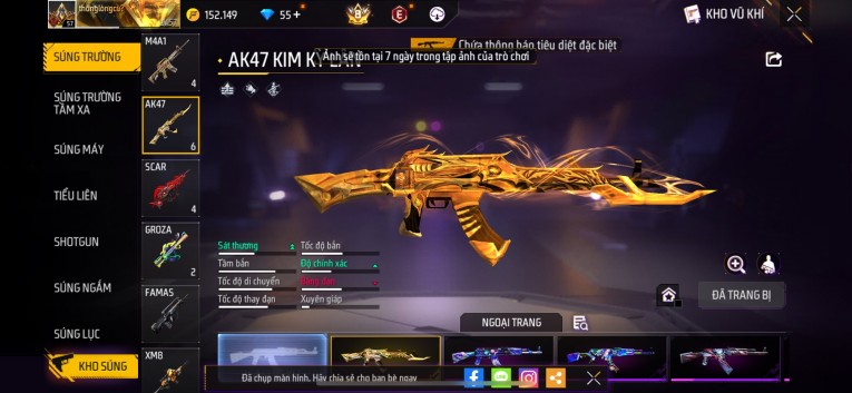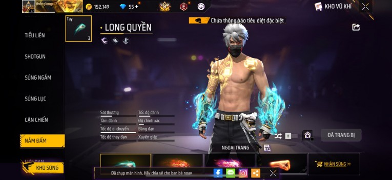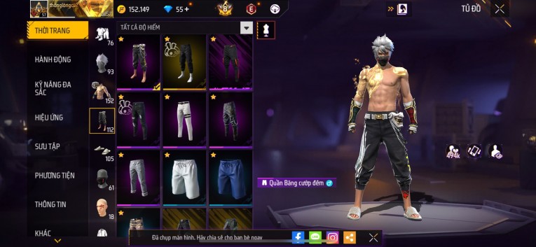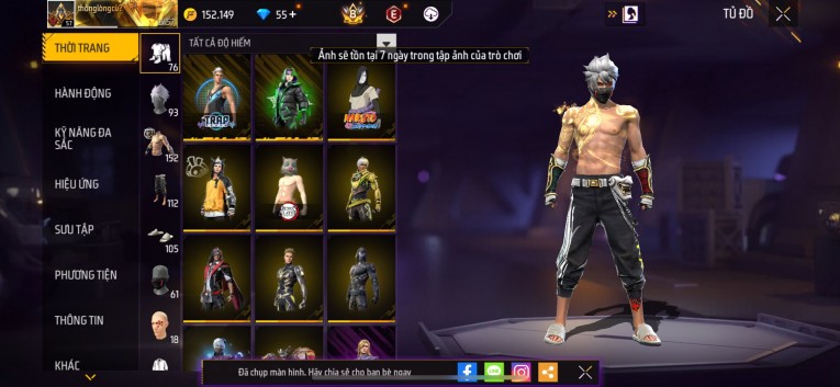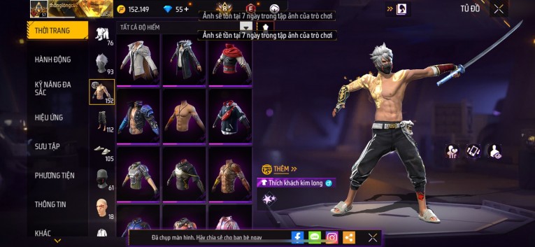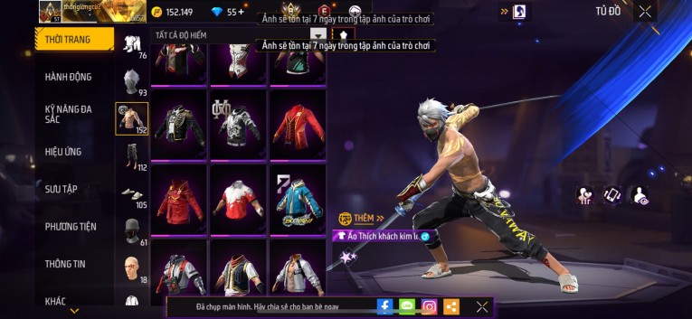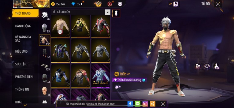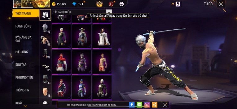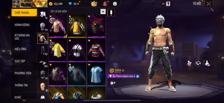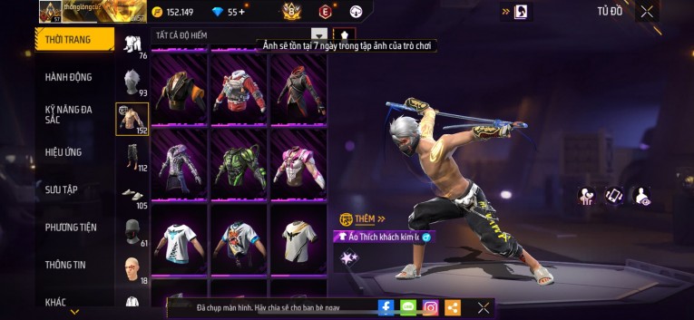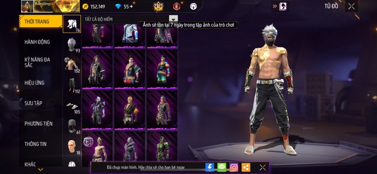 Acc chơi lâu, nhiều skin súng xịn, đầy đủ áo và phụ kiện nam. Đồ đủ dùng, đẹp mắt – vào chơi là chiến ngay! Phù hợp anh em thích skin đẹp, súng mạnh, acc ổn định.