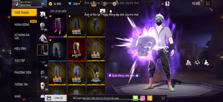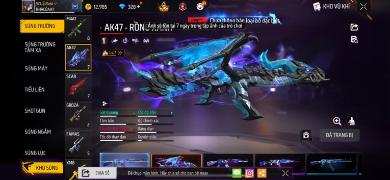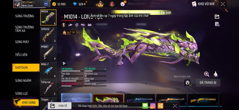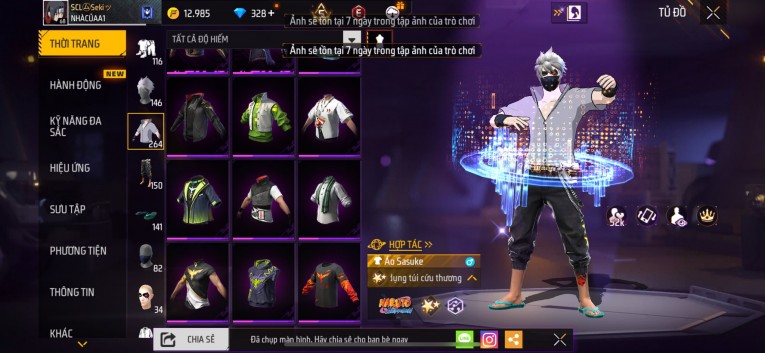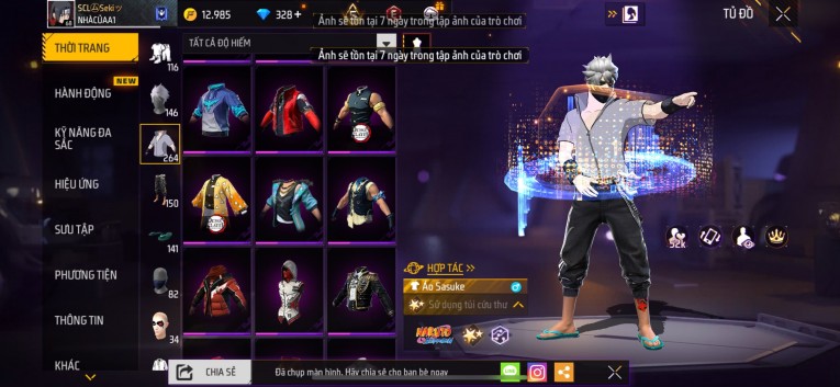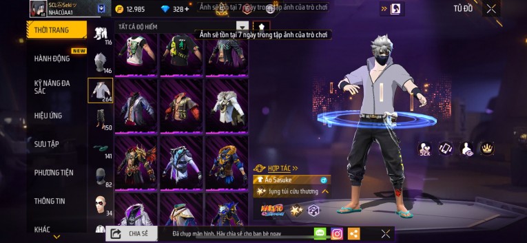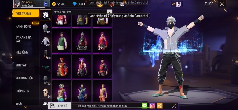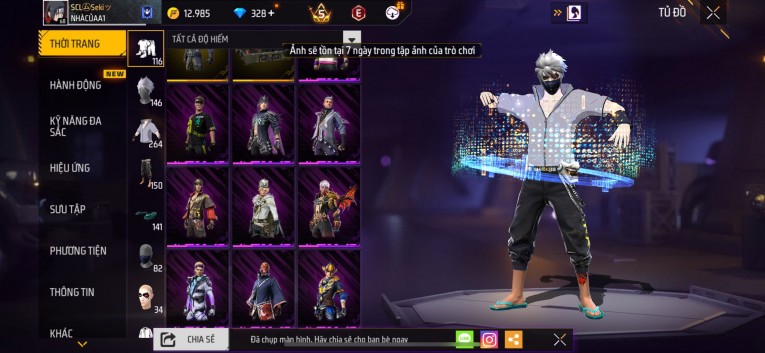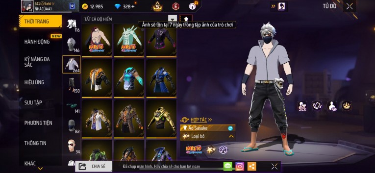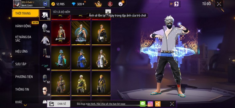 nổi bật: Acc chơi lâu, nhiều skin súng xịn, đầy đủ áo và phụ kiện nam. Đồ đủ dùng, đẹp mắt – vào chơi là chiến ngay! Phù hợp anh em thích skin đẹp, súng mạnh, acc ổn định.