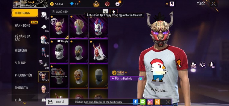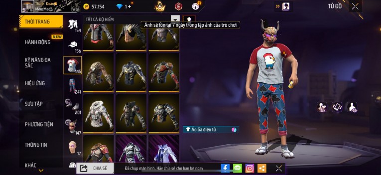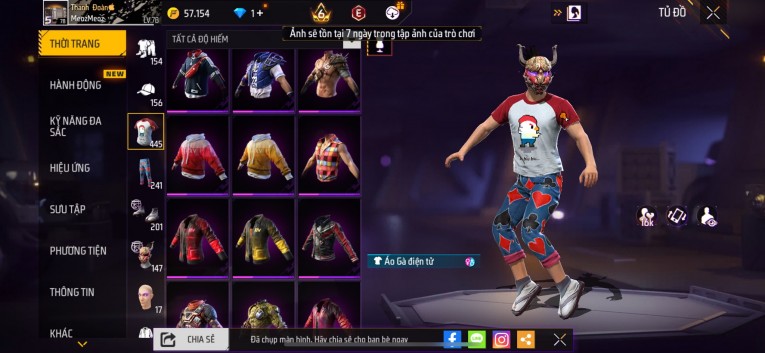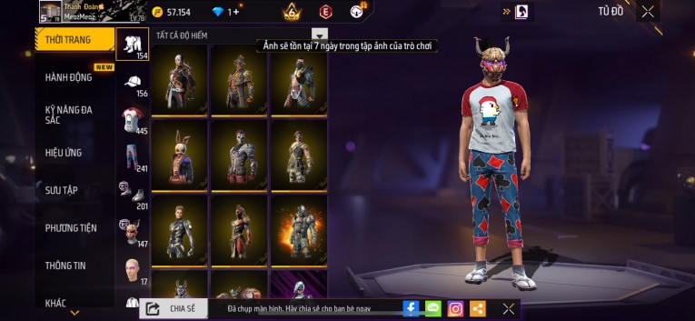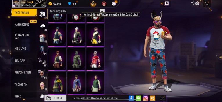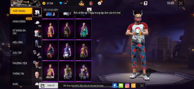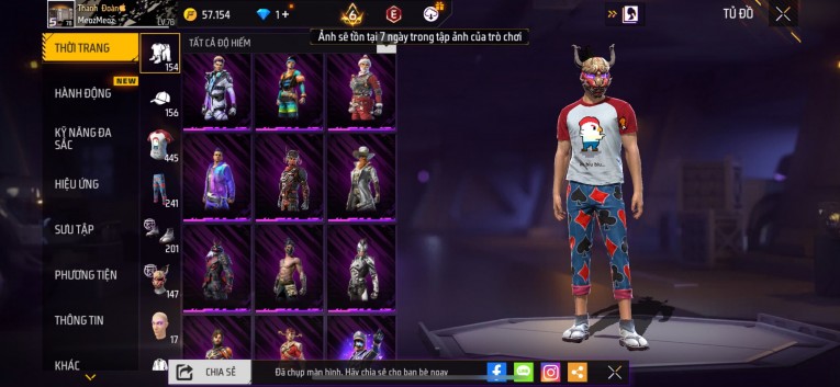Acc chơi lâu, nhiều skin súng xịn, đầy đủ áo và phụ kiện nam. Đồ đủ dùng, đẹp mắt – vào chơi là chiến ngay! Phù hợp anh em thích skin đẹp, súng mạnh, acc ổn định.