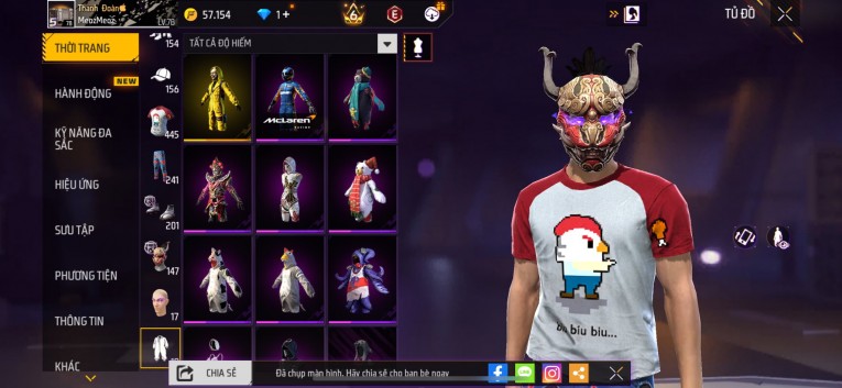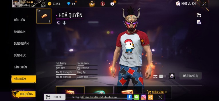 nổi bật: Acc chơi lâu, nhiều skin súng xịn, đầy đủ áo và phụ kiện nam. Đồ đủ dùng, đẹp mắt – vào chơi là chiến ngay! Phù hợp anh em thích skin đẹp, súng mạnh, acc ổn định.