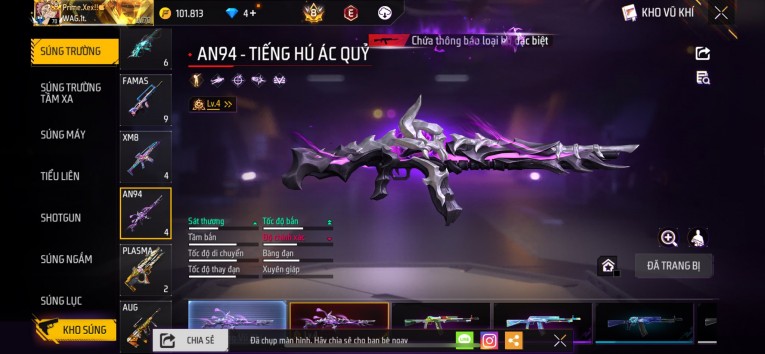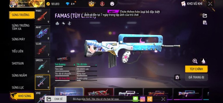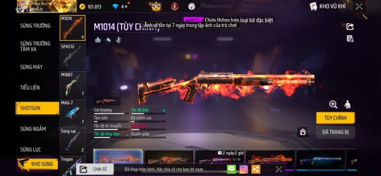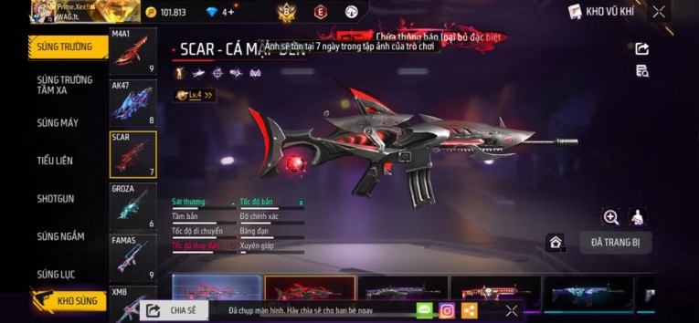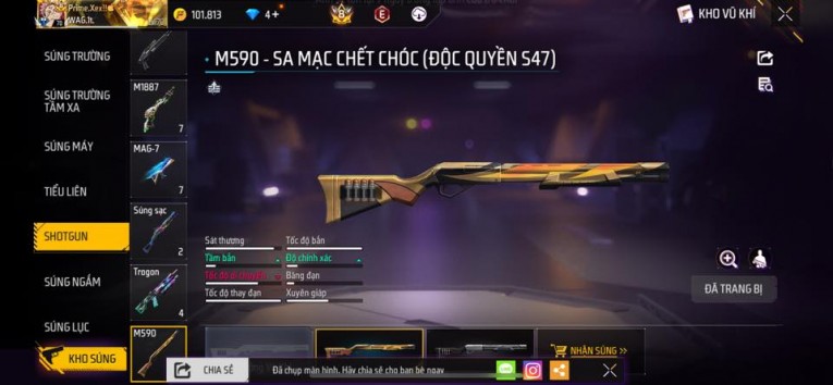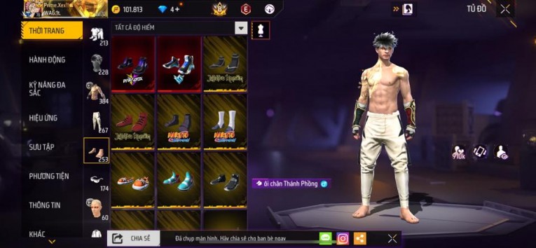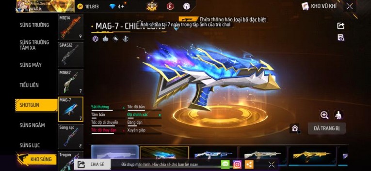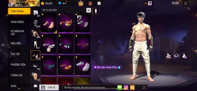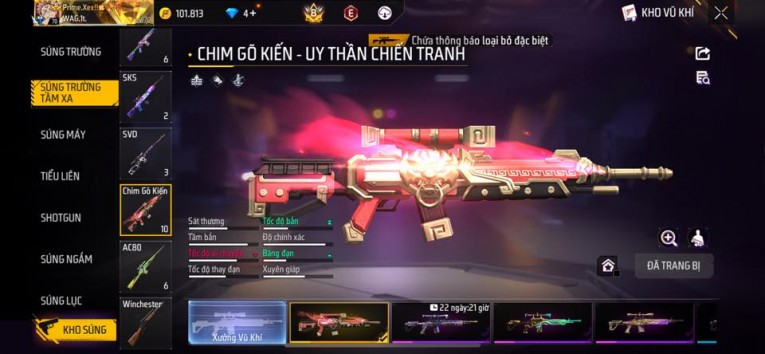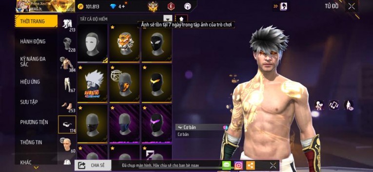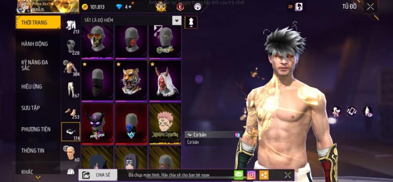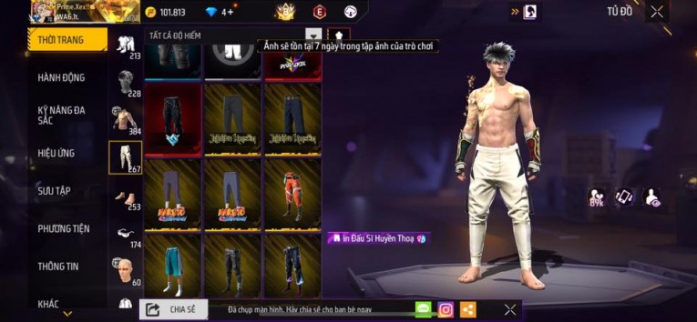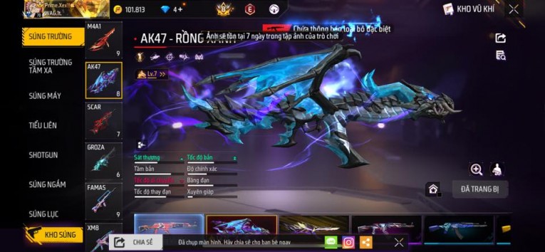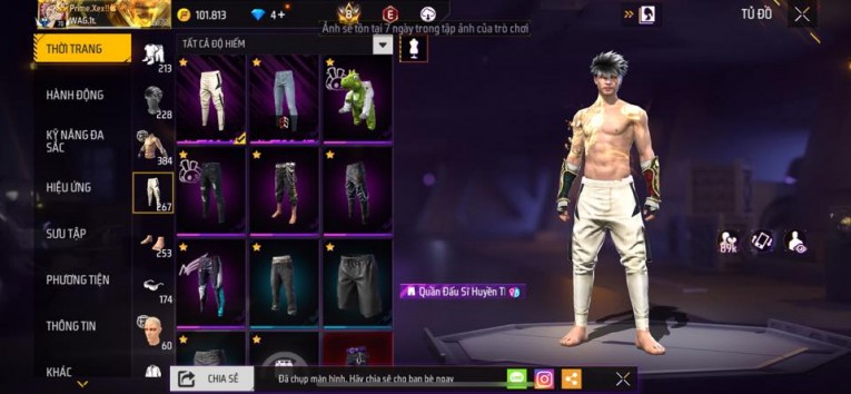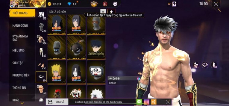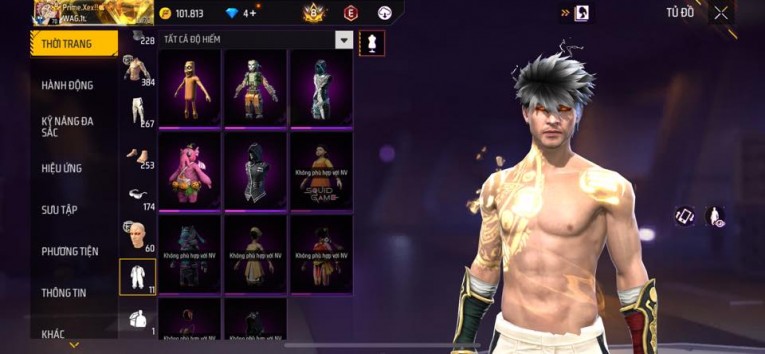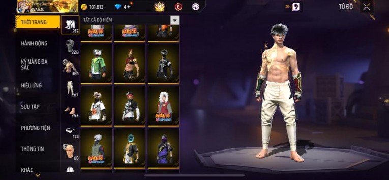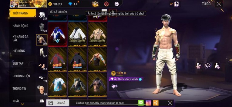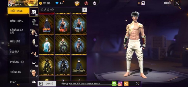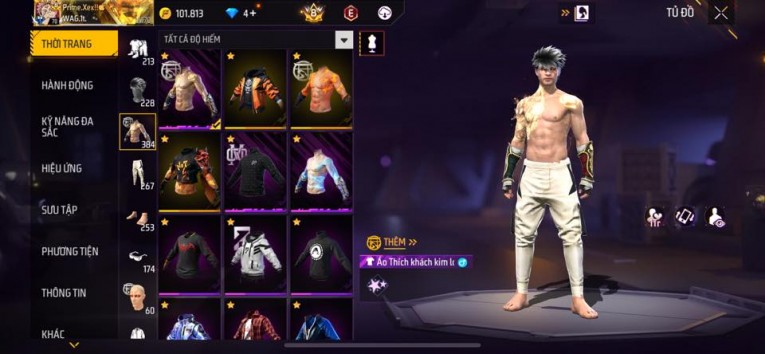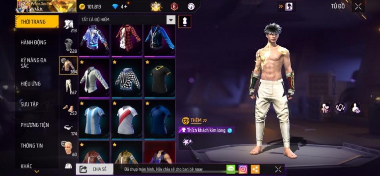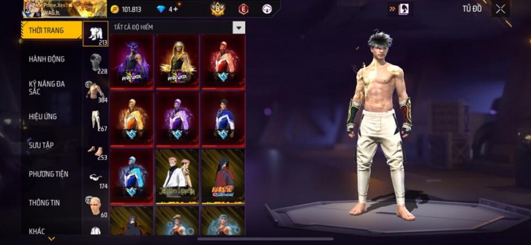 nổi bật: Acc chơi lâu, nhiều skin súng xịn, đầy đủ áo và phụ kiện nam. Đồ đủ dùng, đẹp mắt – vào chơi là chiến ngay! Phù hợp anh em thích skin đẹp, súng mạnh, acc ổn định.