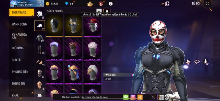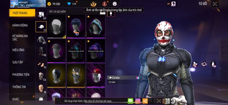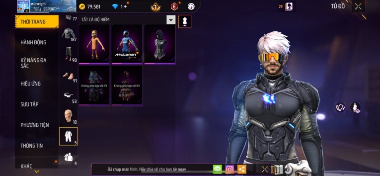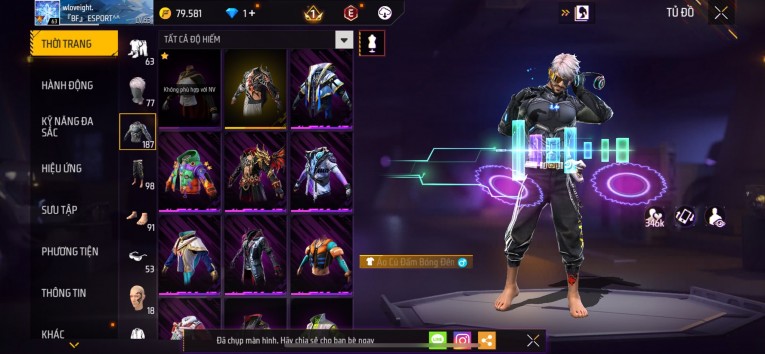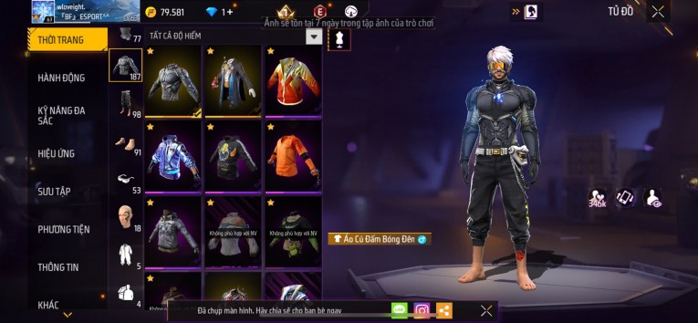 nổi bật: Acc chơi lâu, nhiều skin súng xịn, đầy đủ áo và phụ kiện nam. Đồ đủ dùng, đẹp mắt – vào chơi là chiến ngay! Phù hợp anh em thích skin đẹp, súng mạnh, acc ổn định.