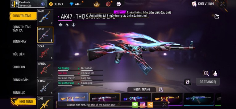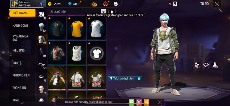 Acc chơi lâu, nhiều skin súng xịn, đầy đủ áo và phụ kiện nam. Đồ đủ dùng, đẹp mắt – vào chơi là chiến ngay! Phù hợp anh em thích skin đẹp, súng mạnh, acc ổn định.