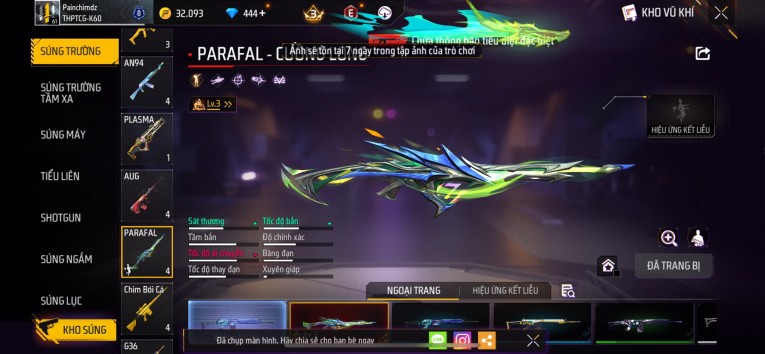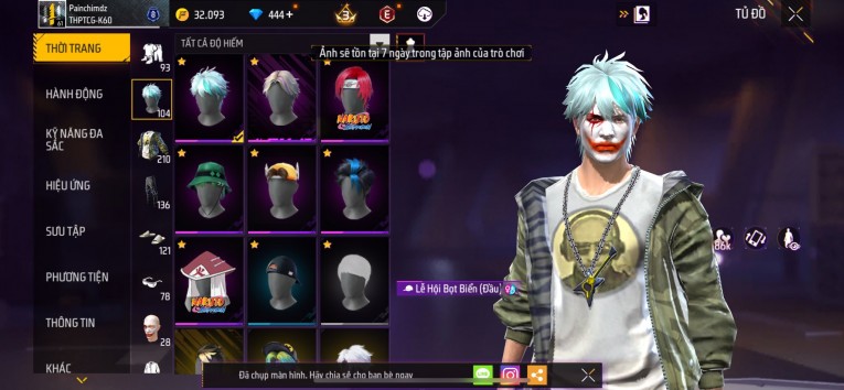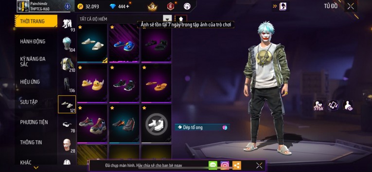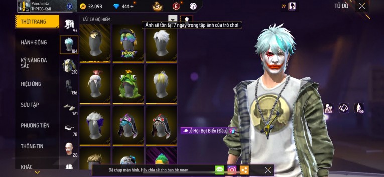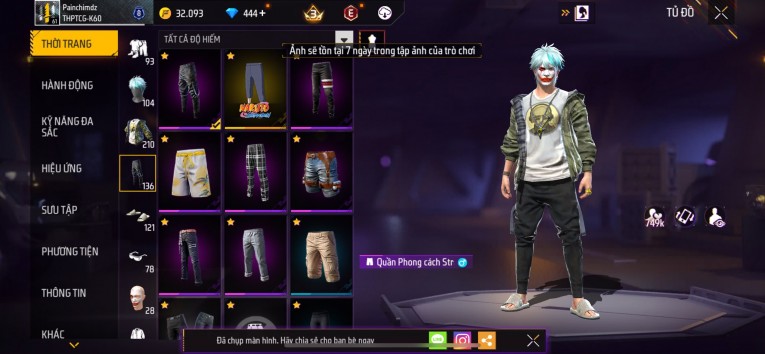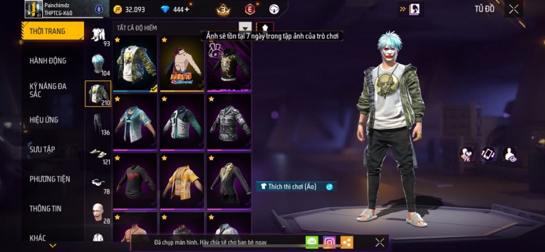 nổi bật: Acc chơi lâu, nhiều skin súng xịn, đầy đủ áo và phụ kiện nam. Đồ đủ dùng, đẹp mắt – vào chơi là chiến ngay! Phù hợp anh em thích skin đẹp, súng mạnh, acc ổn định.