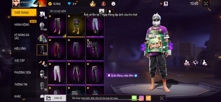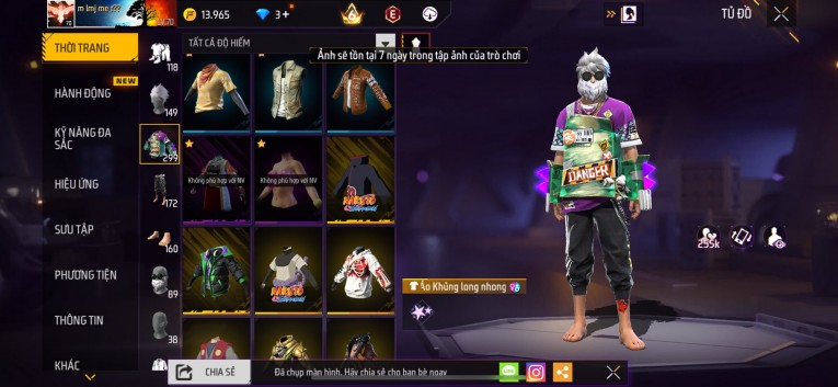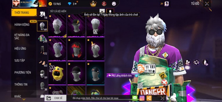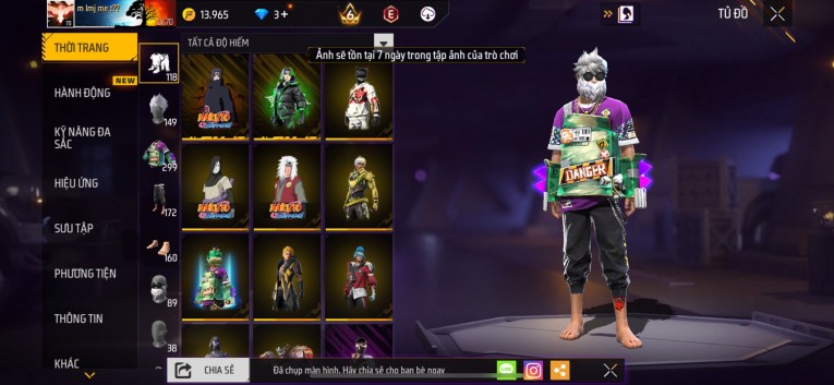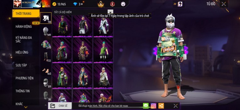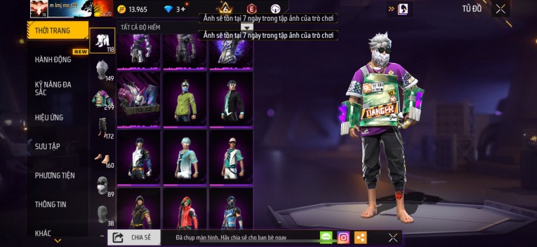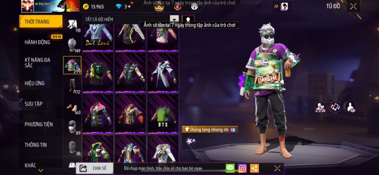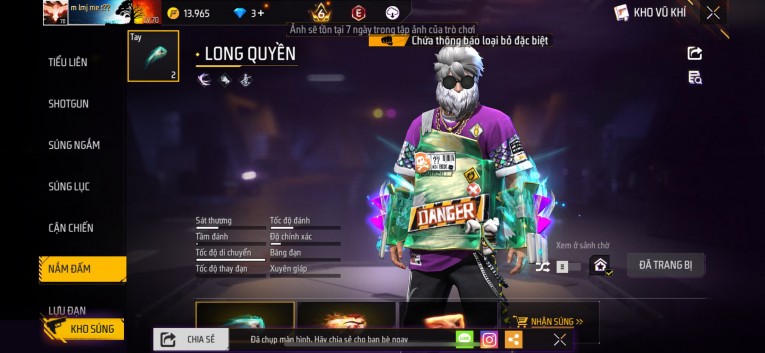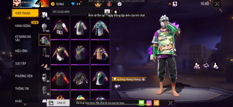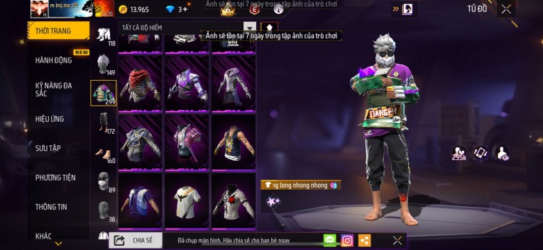 Acc chơi lâu, nhiều skin súng xịn, đầy đủ áo và phụ kiện nam. Đồ đủ dùng, đẹp mắt – vào chơi là chiến ngay! Phù hợp anh em thích skin đẹp, súng mạnh, acc ổn định.