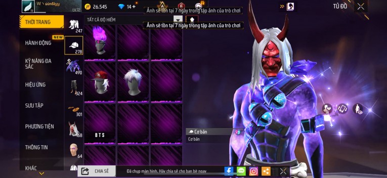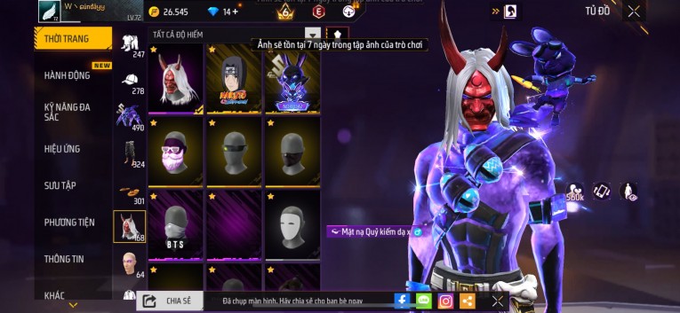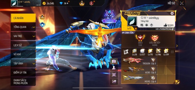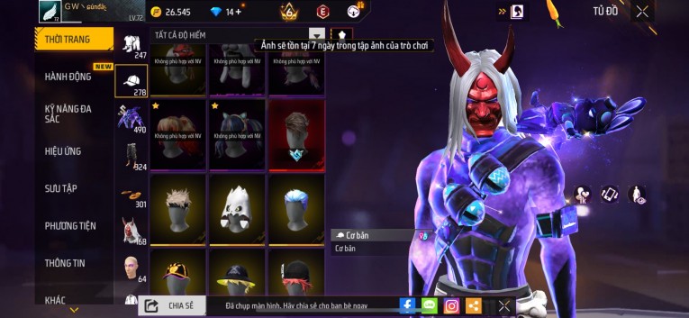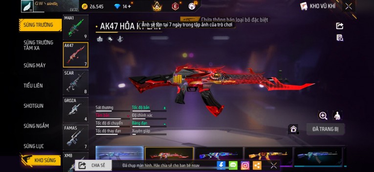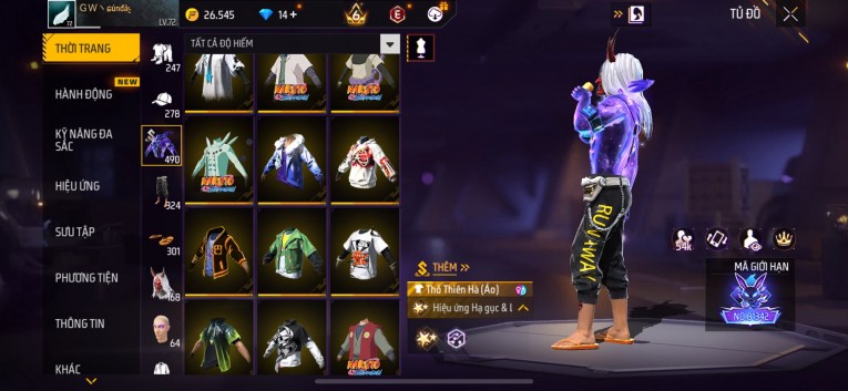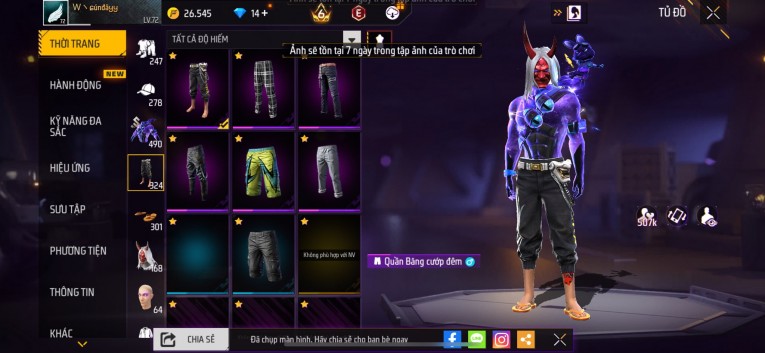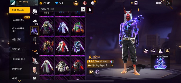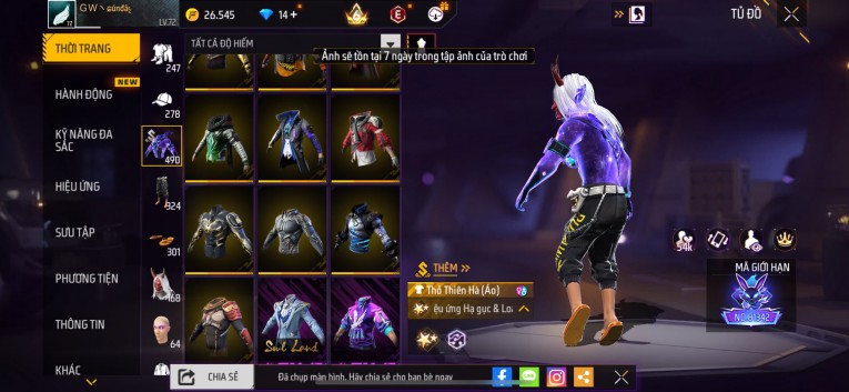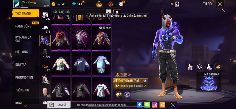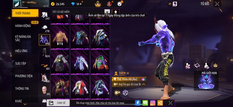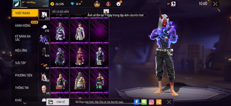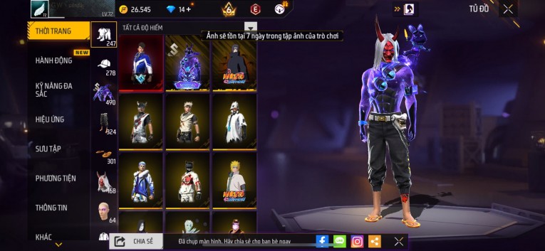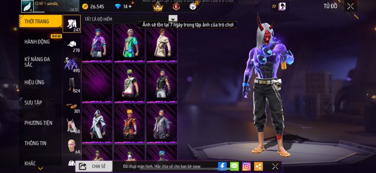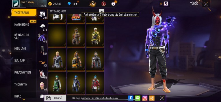 Acc chơi lâu, nhiều skin súng xịn, đầy đủ áo và phụ kiện nam. Đồ đủ dùng, đẹp mắt – vào chơi là chiến ngay! Phù hợp anh em thích skin đẹp, súng mạnh, acc ổn định.