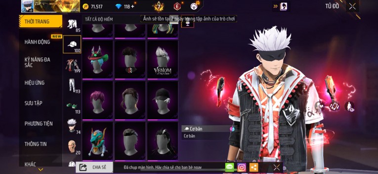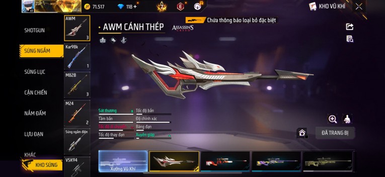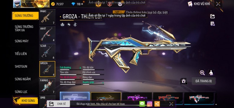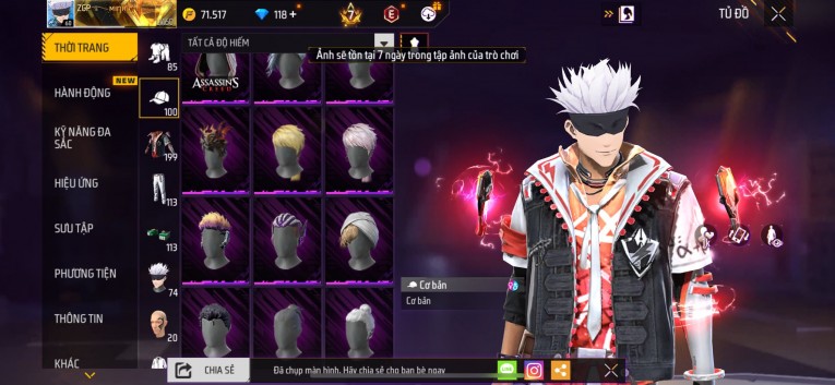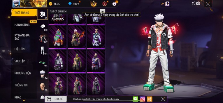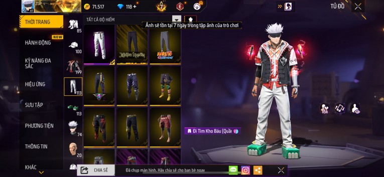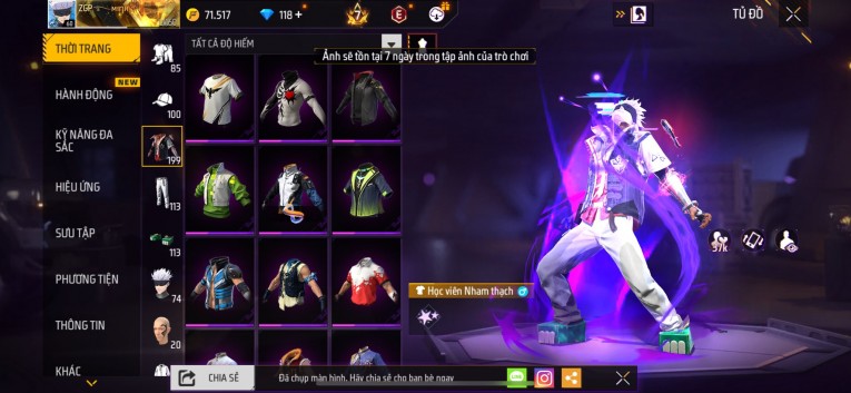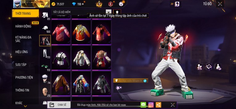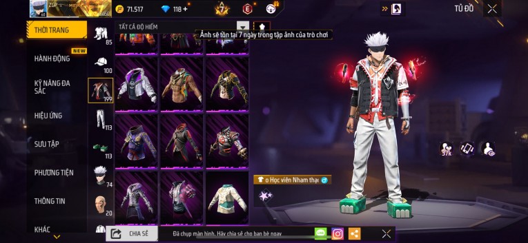 Acc chơi lâu, nhiều skin súng xịn, đầy đủ áo và phụ kiện nam. Đồ đủ dùng, đẹp mắt – vào chơi là chiến ngay! Phù hợp anh em thích skin đẹp, súng mạnh, acc ổn định.