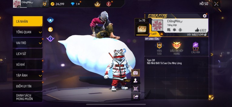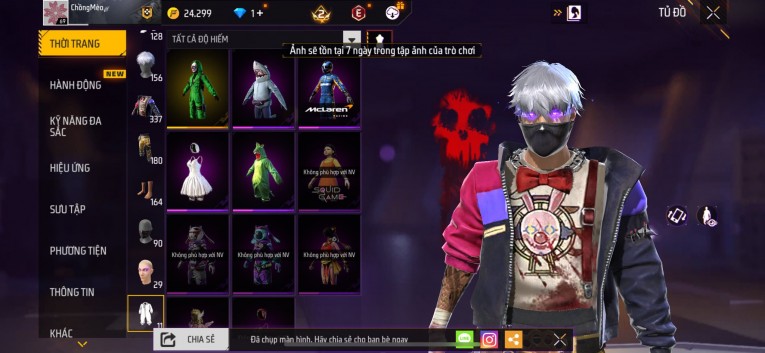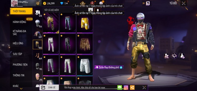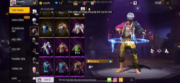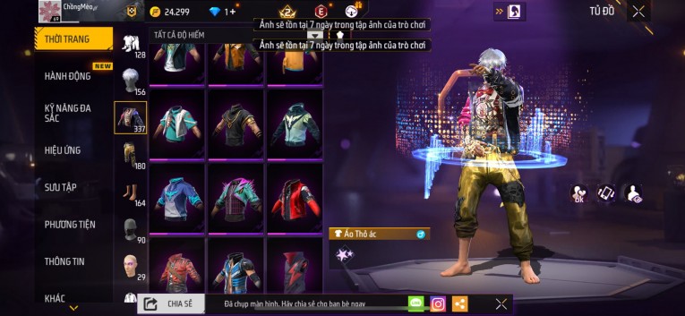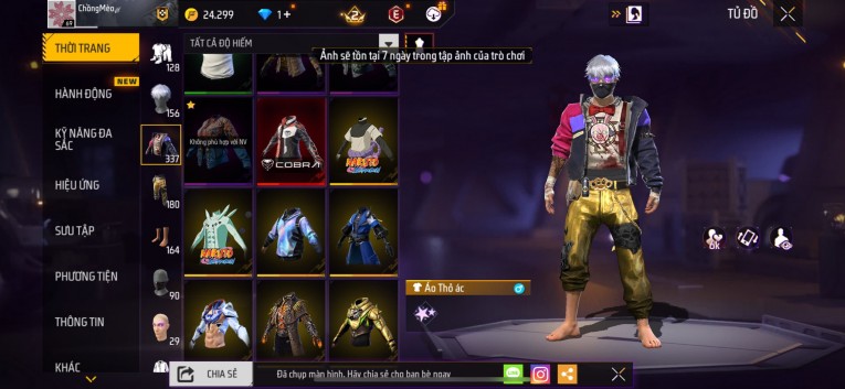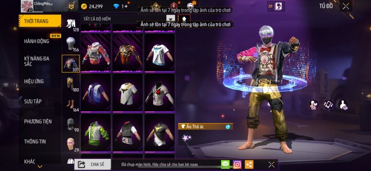 Acc chơi lâu, nhiều skin súng xịn, đầy đủ áo và phụ kiện nam. Đồ đủ dùng, đẹp mắt – vào chơi là chiến ngay! Phù hợp anh em thích skin đẹp, súng mạnh, acc ổn định.