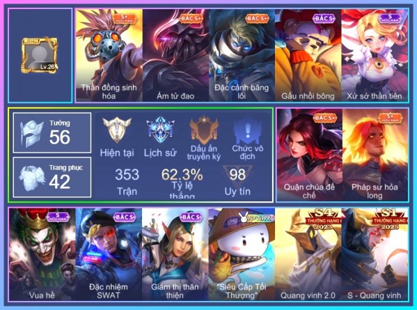 ⭐ Acc giống như hình, rank có thể là rank mùa cũ ⭐