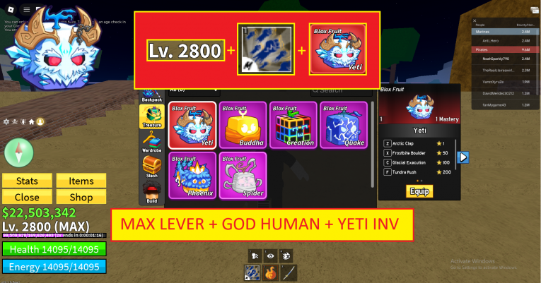 nổi bật: 100% CÓ INV YETI VÀ RANDOM TRÁI ĐỎ NGẪU NHIÊN