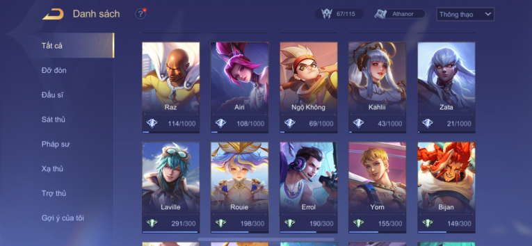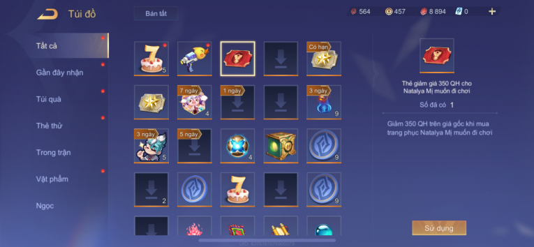 Dư 662k mảnh ngọc nhiều skin ngon cap ss