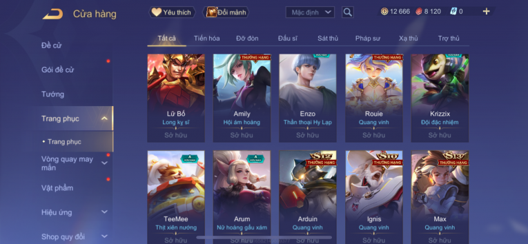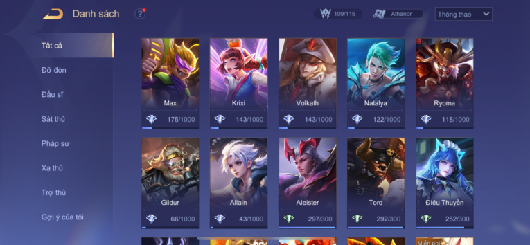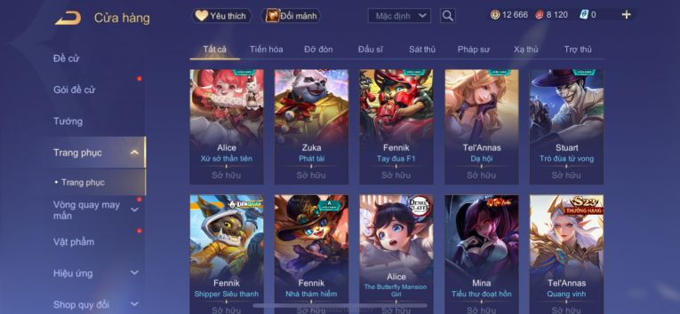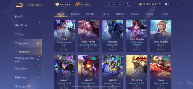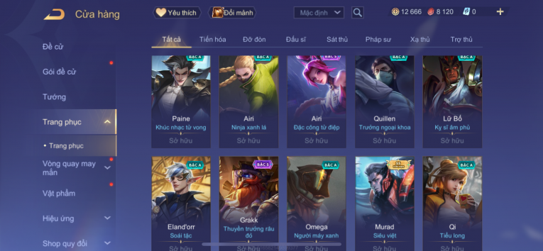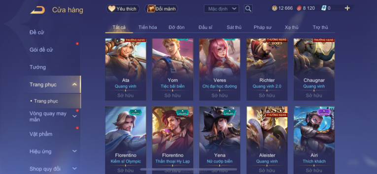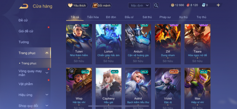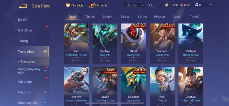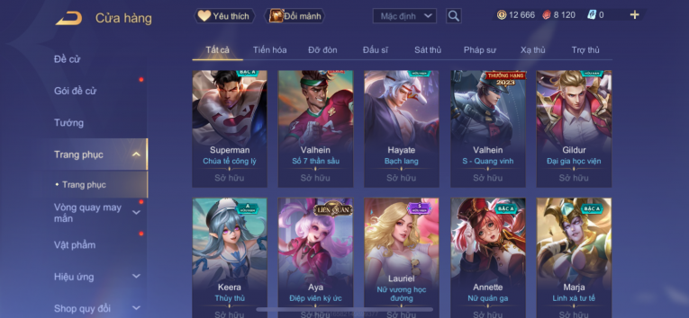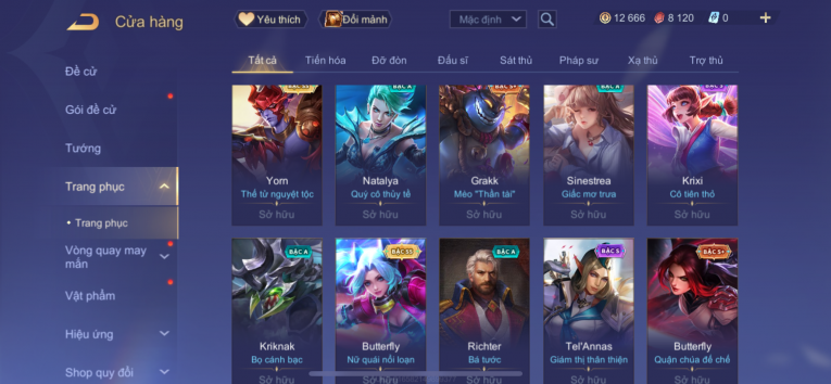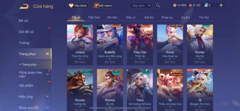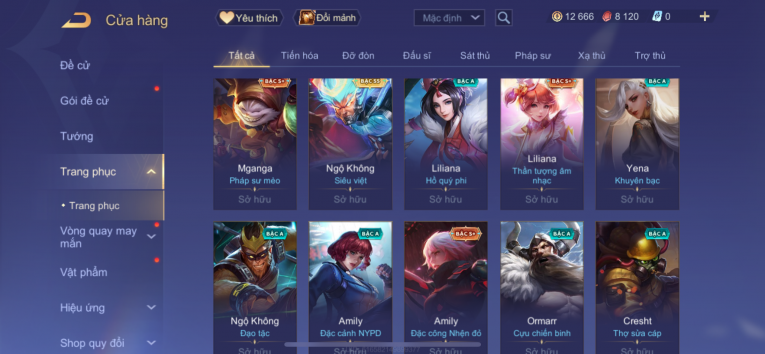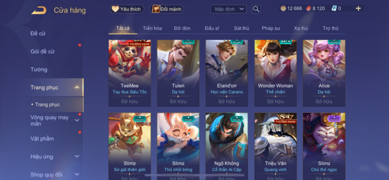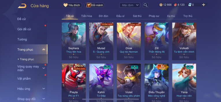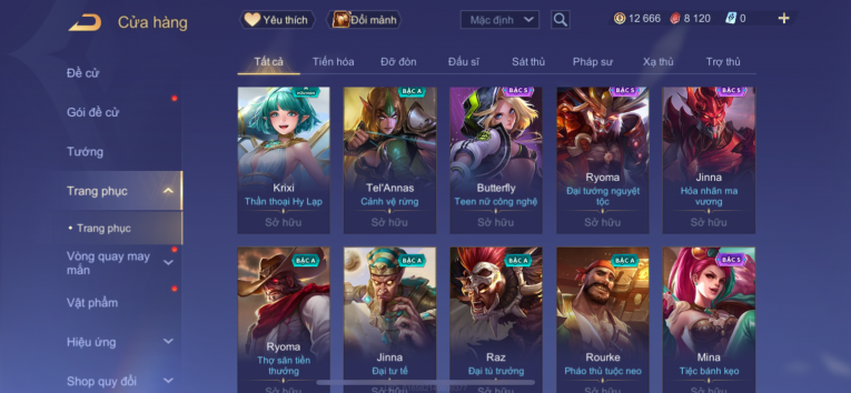 Nhiều skin ss ngon dư 555k mảnh ngọc