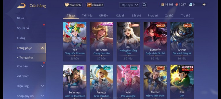 BÁN ACC LIÊN QUÂN REG CỜ NHON - SKIN SS SSS HỮU HẠN