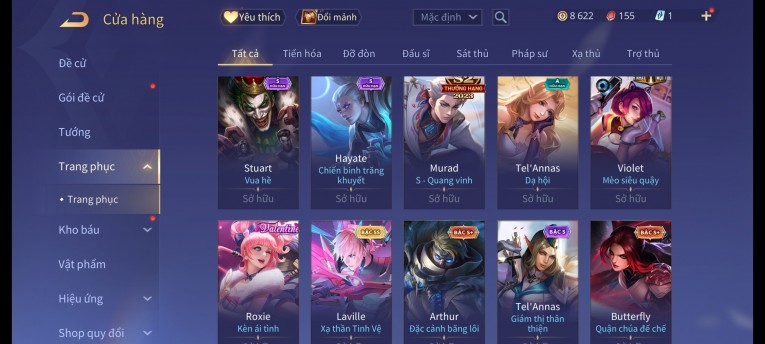 BÁN ACC LIÊN QUÂN REG CỜ NHON - SKIN SS SSS HỮU HẠN