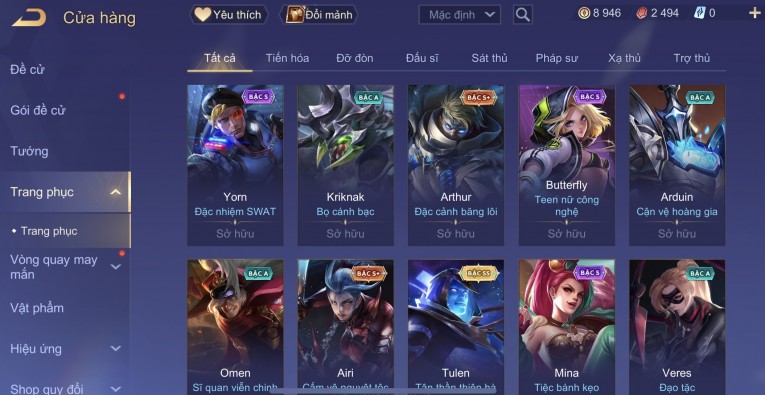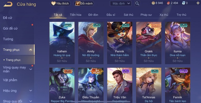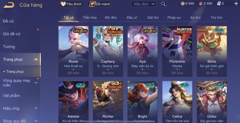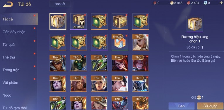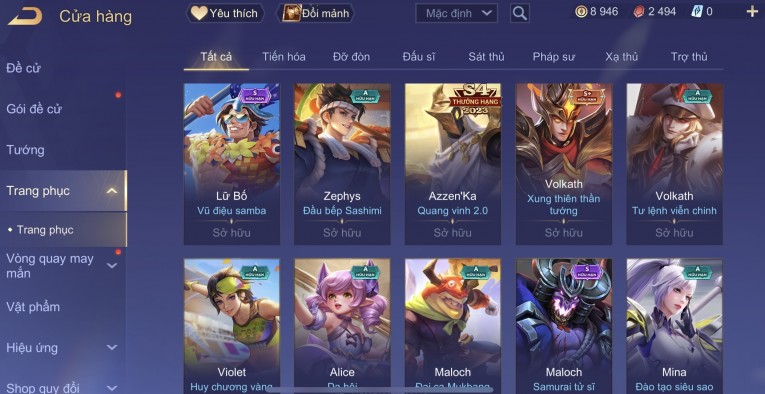 BÁN ACC LIÊN QUÂN REG CỜ NHON - SKIN SS SSS HỮU HẠN