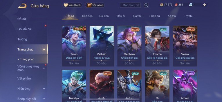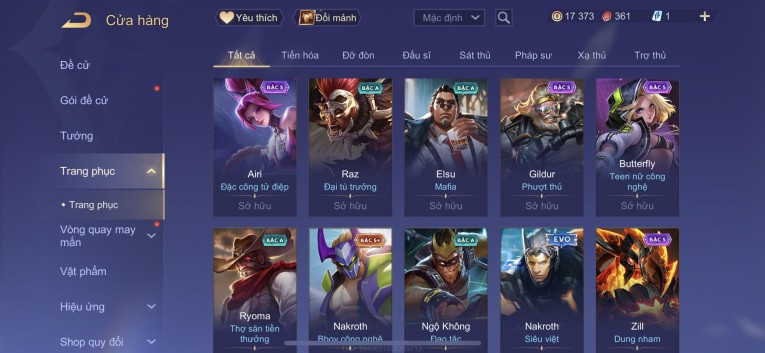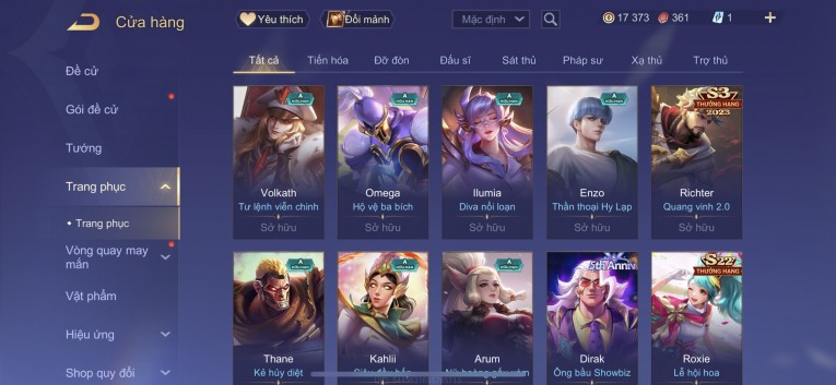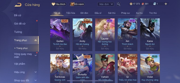 BÁN ACC LIÊN QUÂN REG CỜ NHON - SKIN SS SSS HỮU HẠN