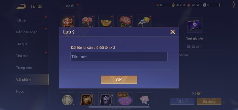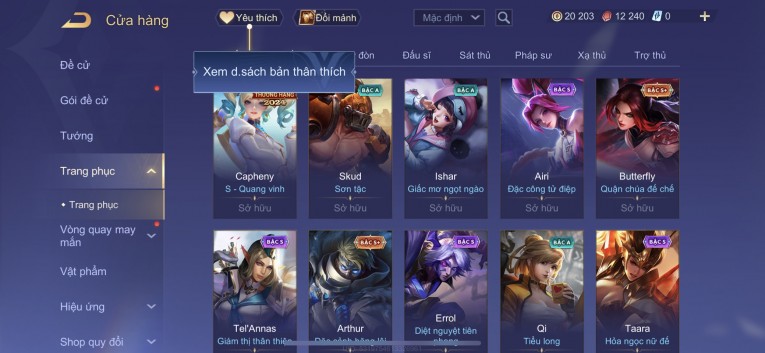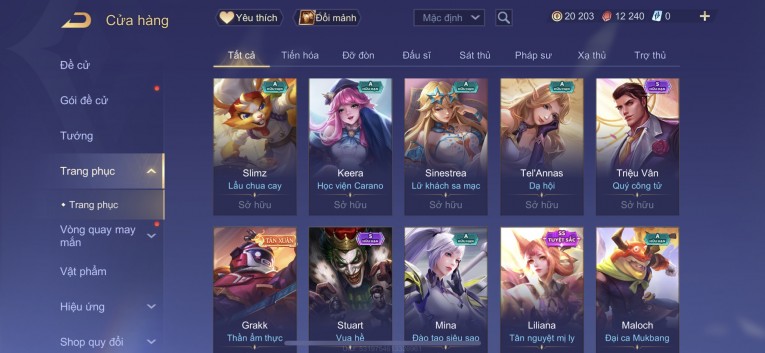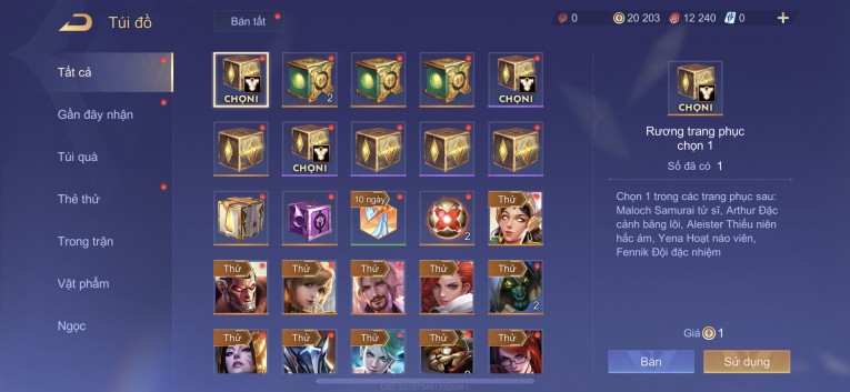 BÁN ACC LIÊN QUÂN REG CỜ NHON - SKIN SS SSS HỮU HẠN