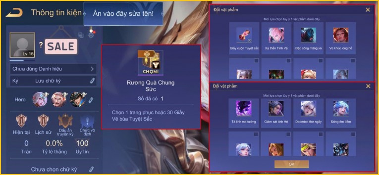 BÁN ACC LIÊN QUÂN REG CỜ NHON - SKIN SS SSS HỮU HẠN